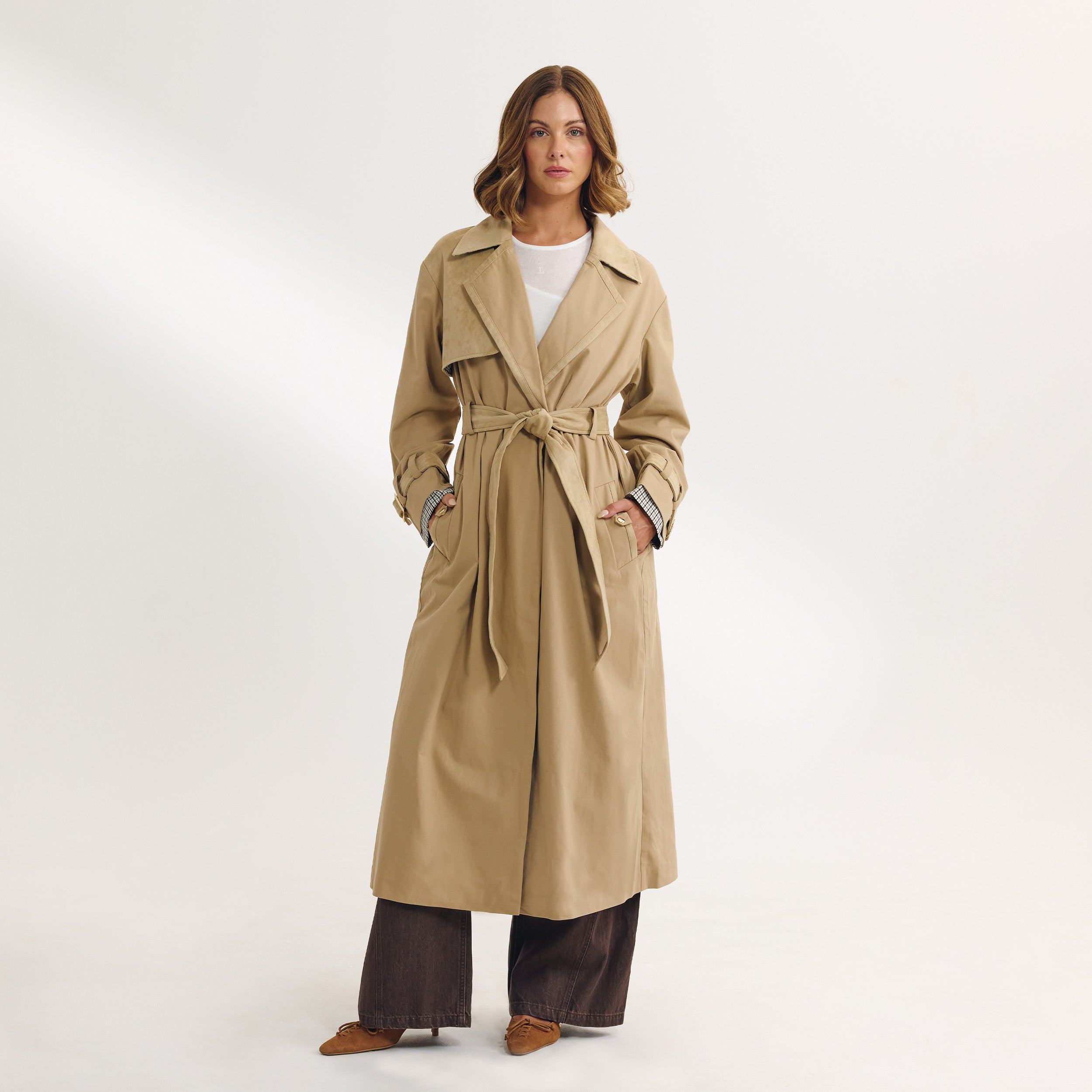 Trench avec Finitions en Daim - Sable